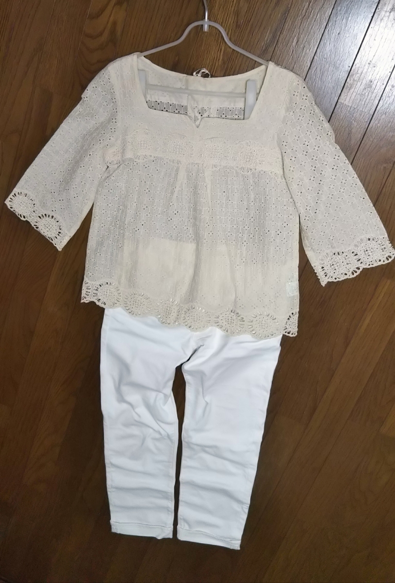 > ROPE ロペ カットソー ブラウス シャツ カットワーク レース リボン M コットン 白系 ベージュ アイボリー 上品 可愛い系 美品