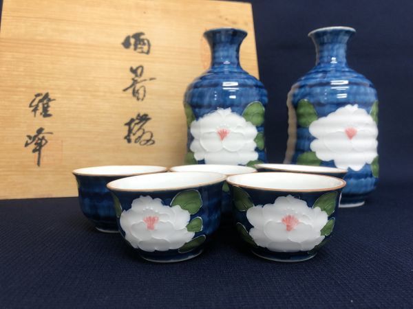 - 未使用品★有田焼 雅峰 酒器揃 徳利 2本 お猪口 5客 セット 共箱あり管理1805 K-13