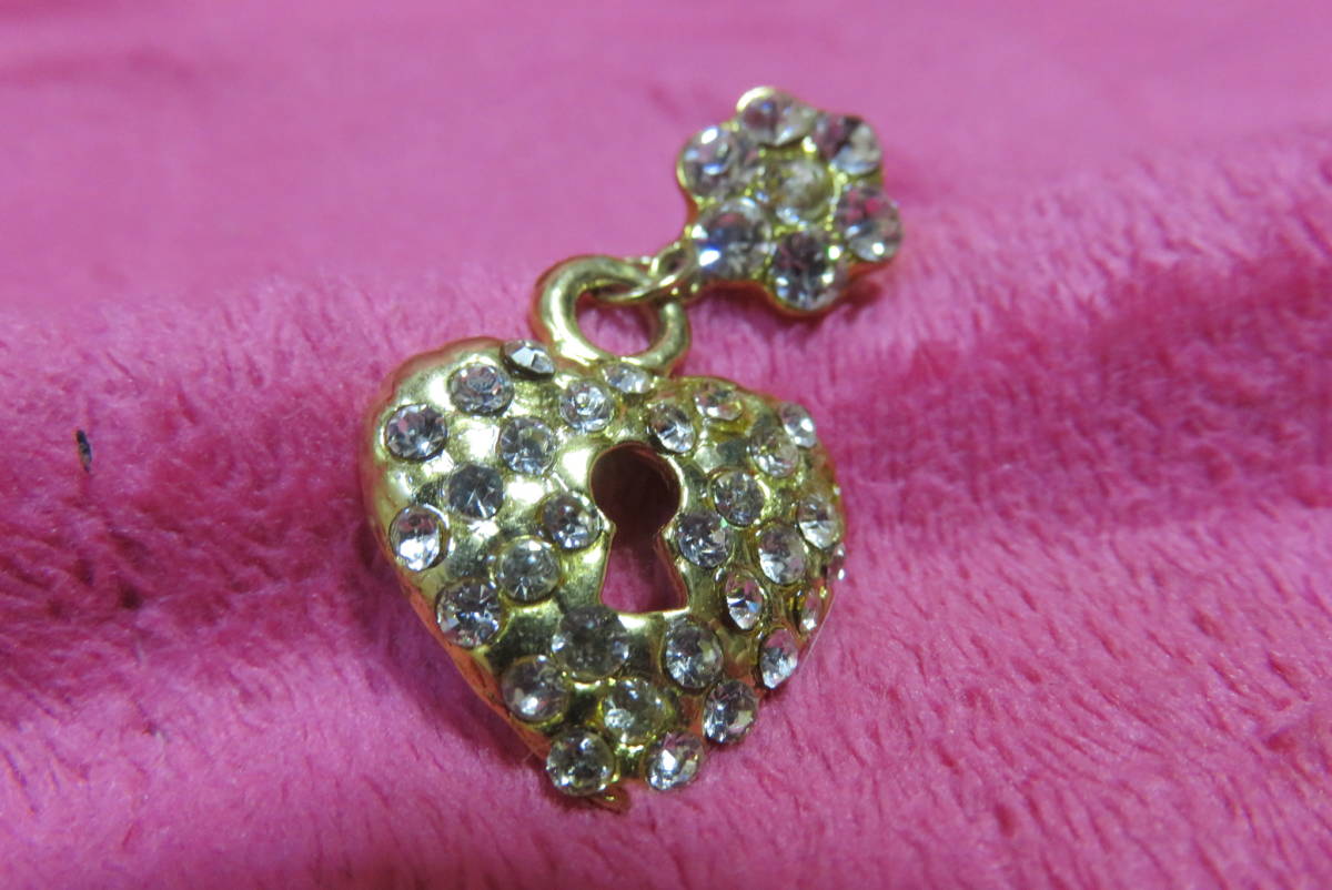 - △4926 ブローチ ハート 鍵穴 ラインストーン ピンズ