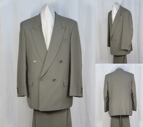 - ★☆ A6-82 ダブル4B×1ピーク衿 上・下 新品 春夏 薄緑鼠系 日本製 ☆★