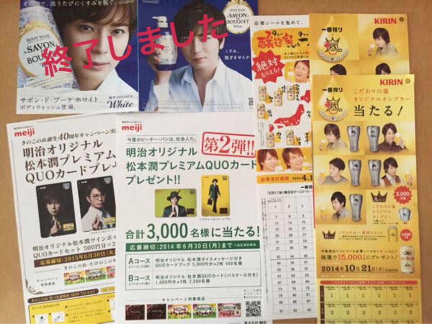- 嵐 松本潤◆明治 懸賞 応募葉書 5点セット*切抜き 大野智 二宮和也 櫻井翔 相葉雅紀 広告