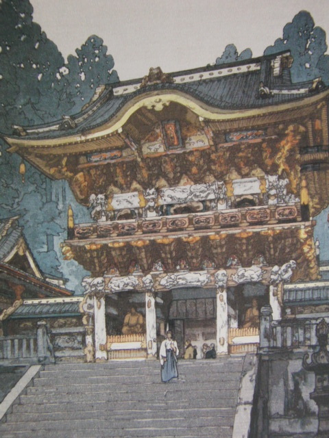 - 吉田博、陽明門、希少な額装用画集より、新品高級額装付、状態良好、送料無料、日本人画家