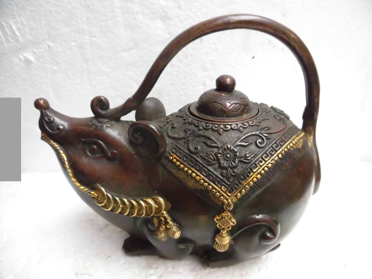 - No68 銅製金鍍 老鼠壷 酒壷 茶壷 急須 酒道具