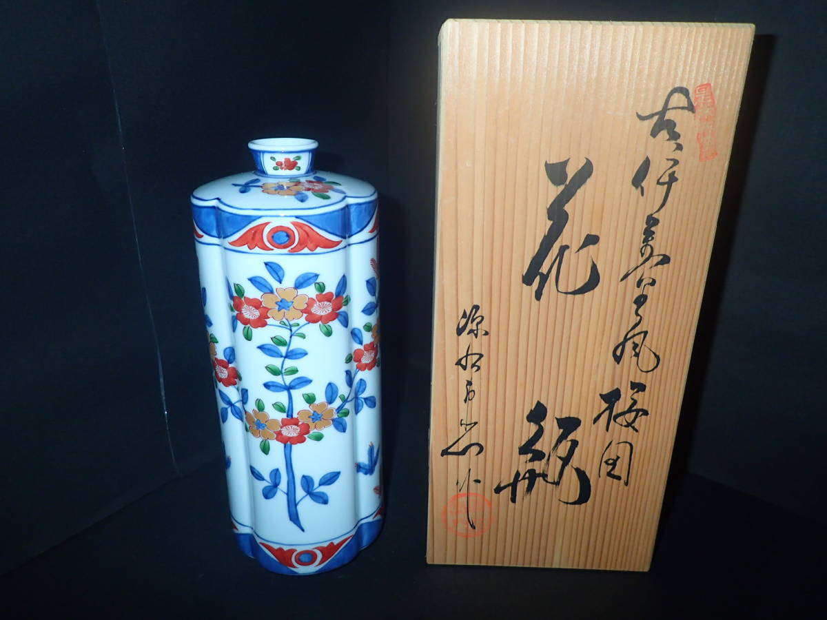 - 有田焼 館林源右衛門 花瓶 花入れ 共箱 高さ約24.1㎝ 花模様 重さ約680g