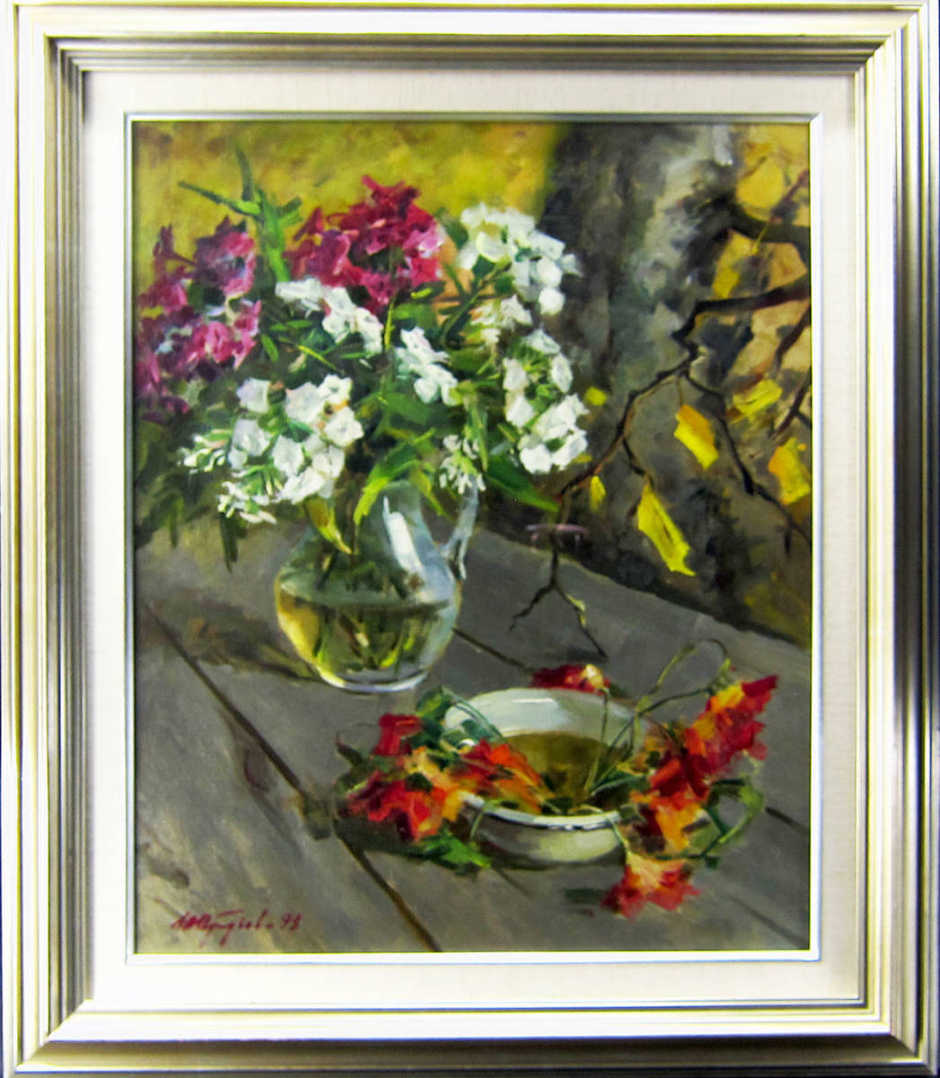- Y・アルブーゾフ 静物 「卓上グラスに花」 油彩真作保証 F12号