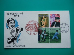 - 初日印◆FDC◆20世紀デザイン切手 解説書付3枚組 第7集 エノケン一座 他 +第8集 愛染かつら 他 + 第9集 真珠湾攻撃 他