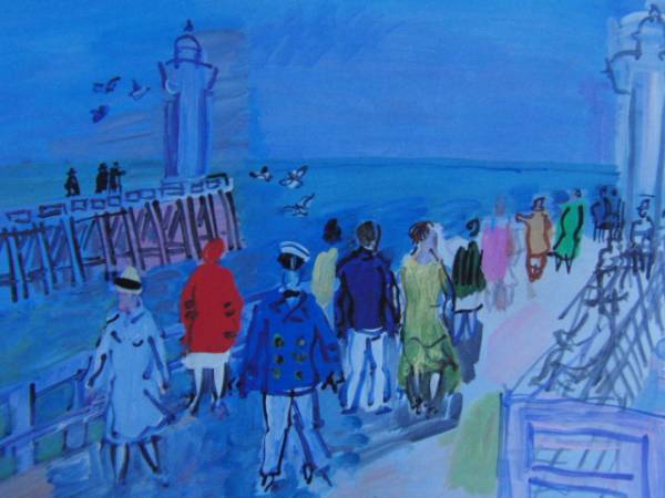 - ラウル・デュフィ、ドーヴィルの埠頭、希少な額装用画集より、新品高級額装付、状態良好、送料無料