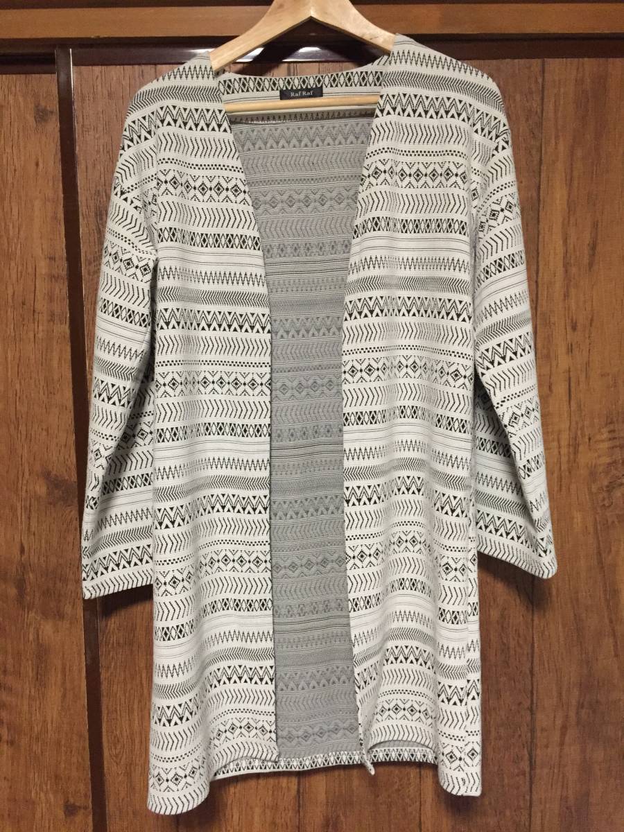 - Lサイズ ロング カーディガン ネイティヴ柄 秋 冬 美品 モノトーン