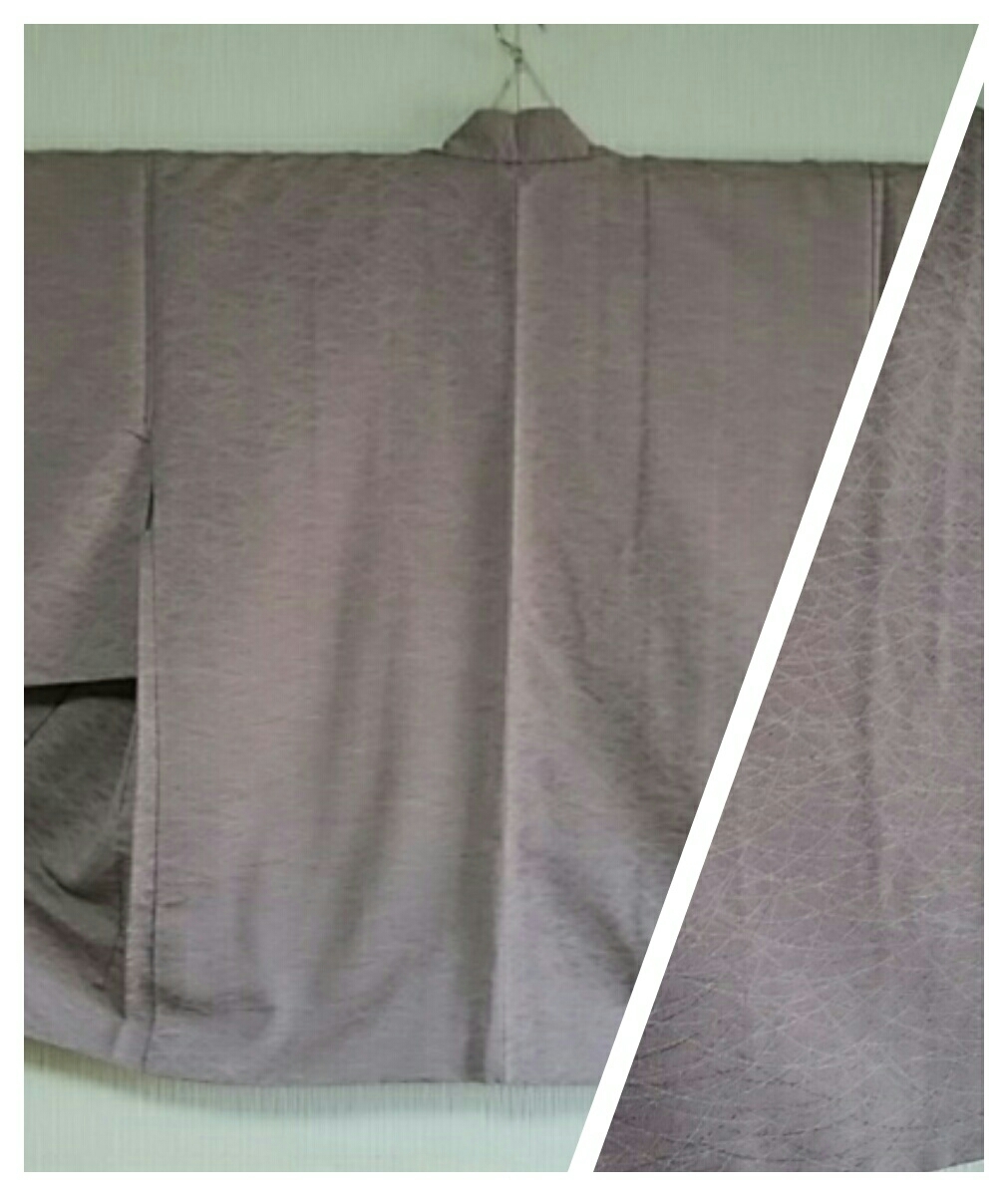 - [落着いた羽織]正絹/袷/羽織丈75.5cm/露芝柄/鳩羽鼠色/羽織紐