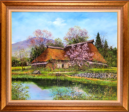 - 尾身周三(越後の早春 六日町 20号)油彩画 真作 Acre
