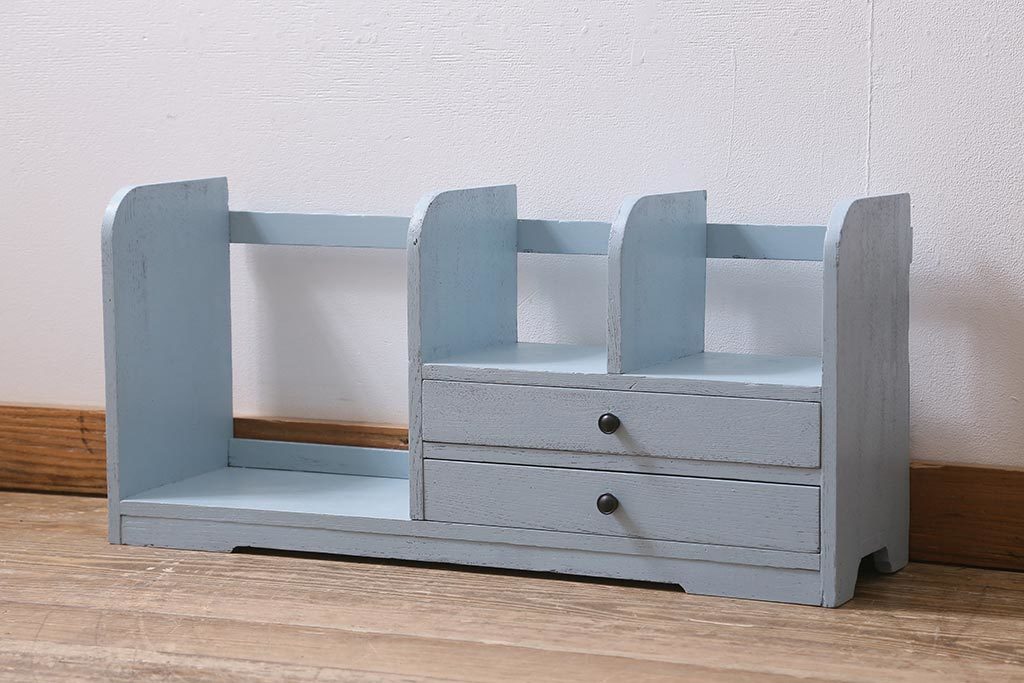 - R-043505 レトロ雑貨 昭和中期 引き出し付き! お洒落なペイントカラーが目を惹く木製の本立て(ブックスタンド)