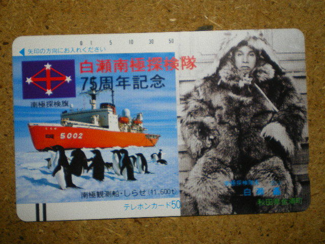 - gaik・110-18893 白瀬 南極探検隊 観測船しらせ ペンギン 秋田県 金浦町 テレカ