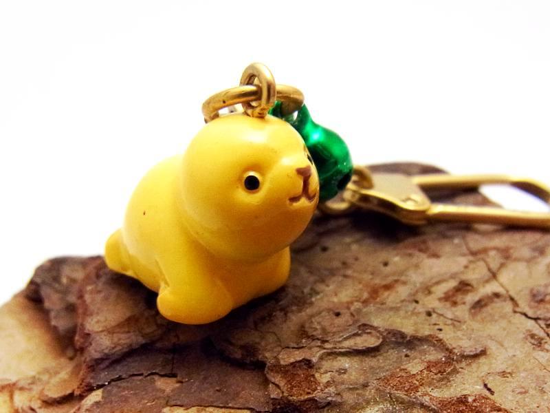 - 【かわいい♪】黄色いアザラシちゃん フォーチュン・風水グッズ 交通安全 マスコット 小判チャーム付き キーホルダー お土産 お守り