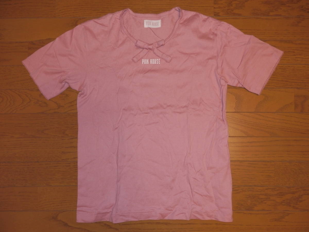 - USED品★PINK HOUSE ピンクハウス リボン付き 半袖Tシャツ L 日本製 ピンク