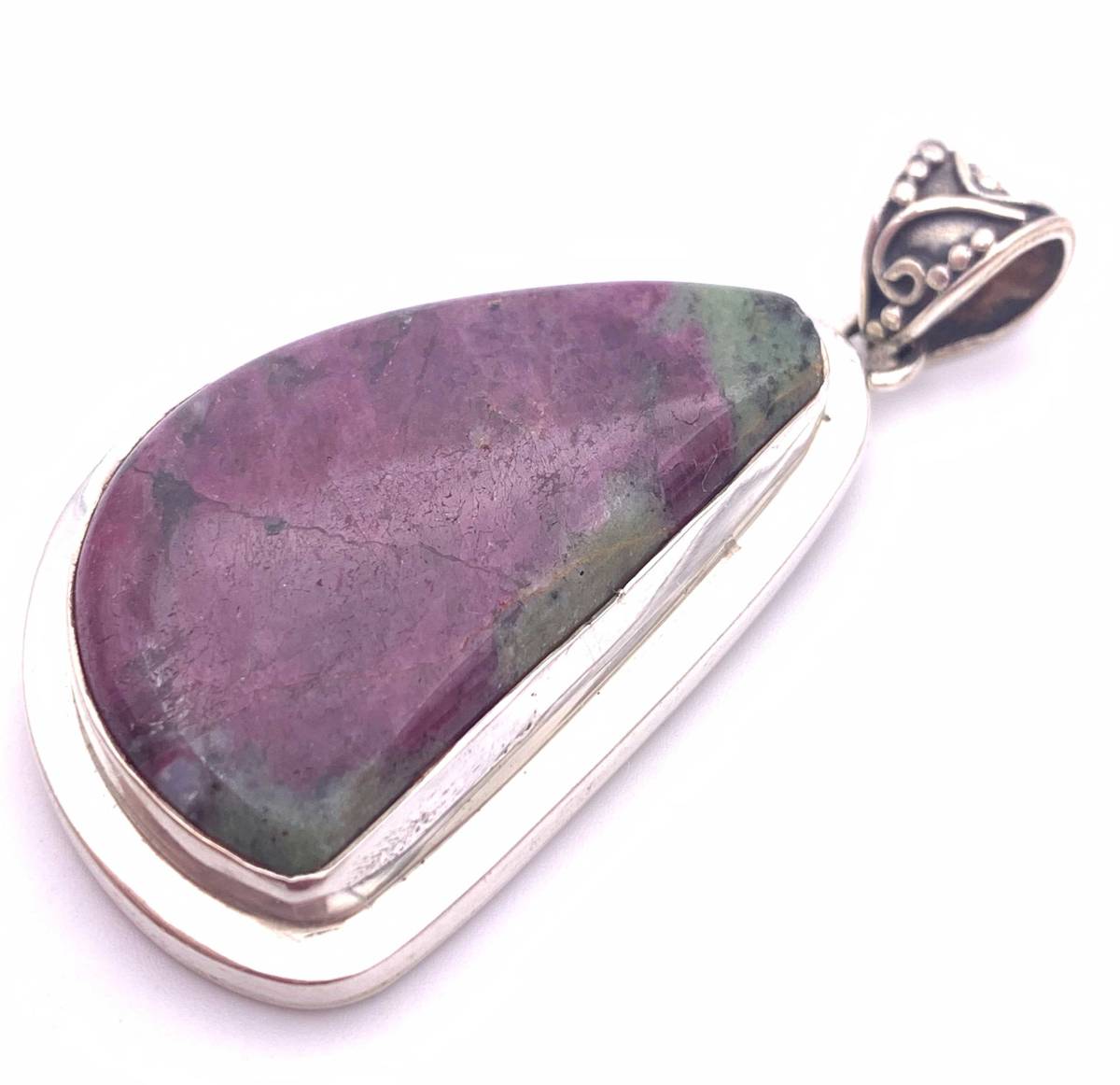 - 天然石ルビーゾイサイトsilver925トップ/HANDMADE-08