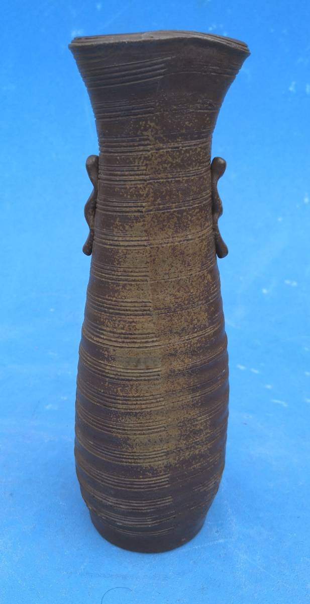 - 備前焼花入れ 花瓶 サイズ高さ約26.5cm直径約8cm陶印有りますが作者不明