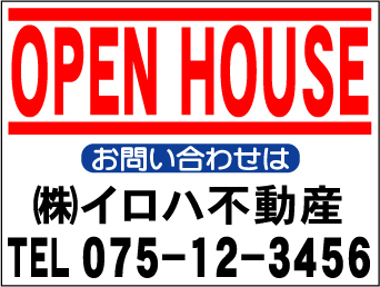 - ¥999社名入不動産募集看板「OPEN HOUSE」Sサイズ45x60cm