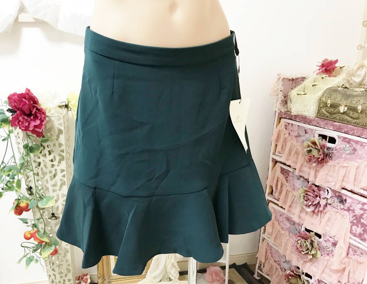 - レディス38/Mサイズ:ボンメルスリー【BON MERCERIE】ワールド◆ふんわり裾フレアー切替*スカート:深緑 定価:6,900+税