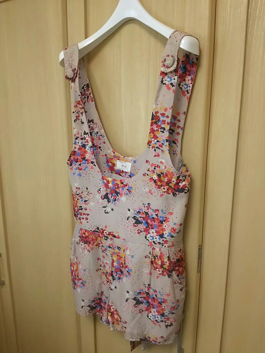 - ef-de 7号 エフデ 花柄 総シフォン リボン付 オールインワン キャミソール キュロット Sサイズ相当 送料無料 裏地付き