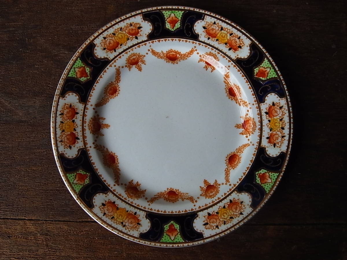 - 硬質陶器 花柄の縁の平皿③/プレート IRONSTONE レトロ 食器 金彩