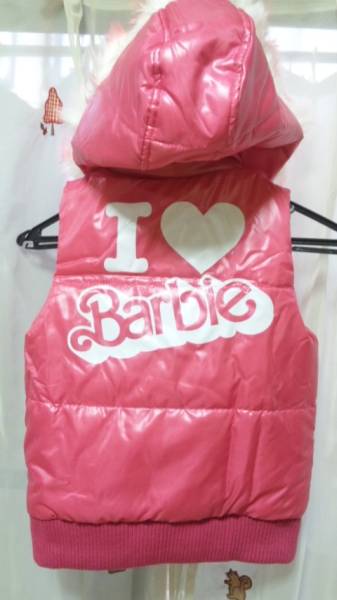 - 新品 Barbie バービー ダウン調 ファーフード付 ベスト 120 中綿ベスト ピンク ロゴ