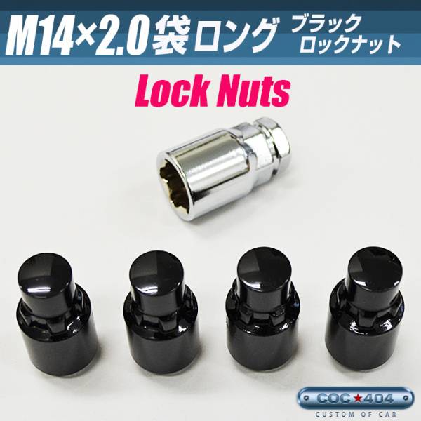 > 14x2.0 M14-2.0 ロング ホイールロックナット スチール製 袋 ブラック 【1セット】フォード F-150 F150 ナビゲーター アメ車など