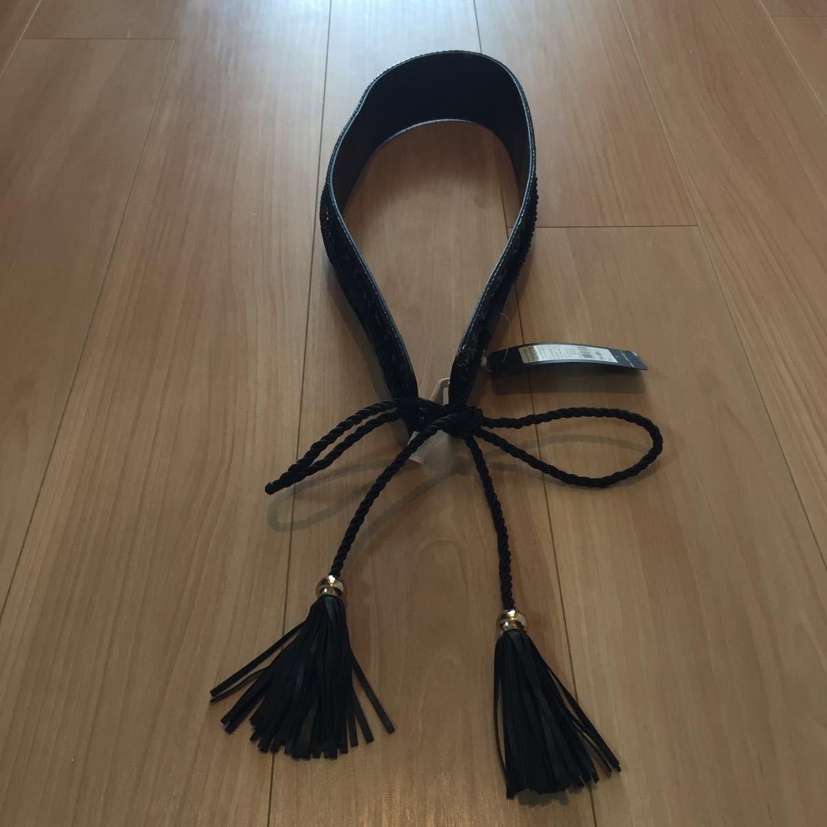 - ベルト 幅広 スパンコール アクセント 華やか 黒色Mサイズ co beauty 未使用 結婚式 パーティ ロープ フリンジ タッセル ベルト幅6.2㎝