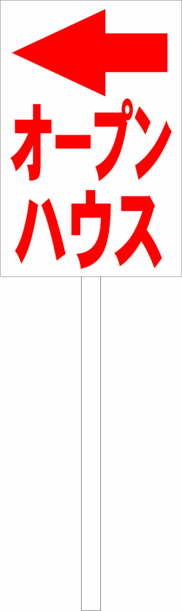- シンプル立札看板 「オープンハウス左折(赤)」不動産 屋外可(面板 約H45.5cmxW30cm)全長1m
