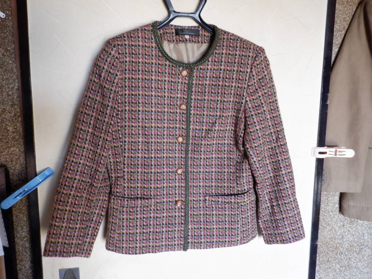 - Ladies Fashion スーツ 茶系のチェック柄 11AR Lサイズ 秋冬物 ウール 80% 日本製