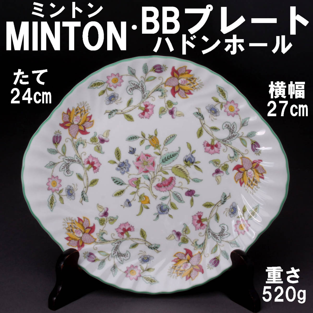 > MINTON ミントン BBプレート 手付き皿 ハドンホール 横幅27㎝ たて24㎝ 520g 中古 KA-7385