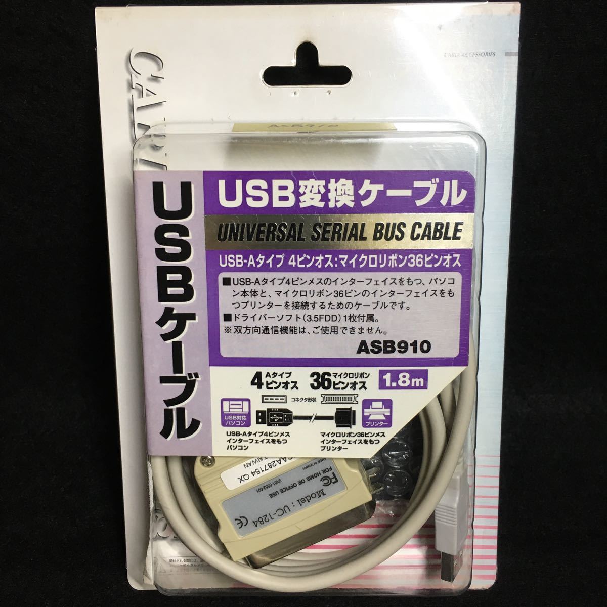 - アクロス USB交換ケーブル USB-Aタイプ 4ピンオス マイクロリボン36ピンオス ASB910