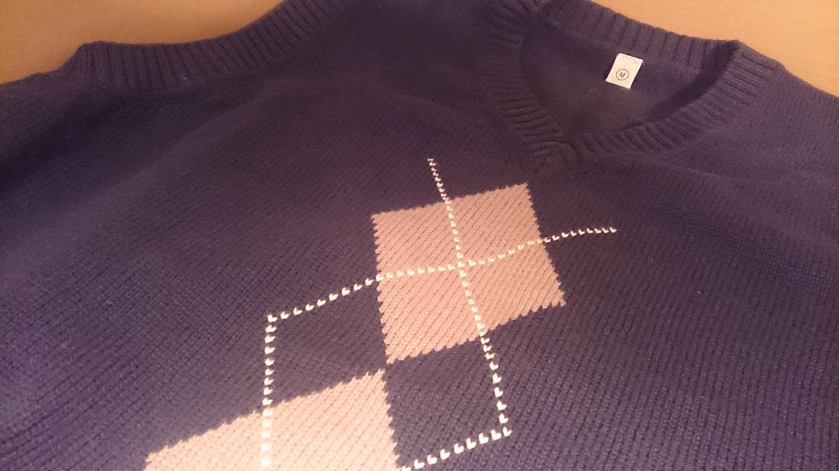 - 00s 当時物 旧首タグ UNIQLO ユニクロ ニット コットン ベスト プルオーバー Vネック ネイビー アーガイル柄 M・身幅約46cm※USED品/稀少品