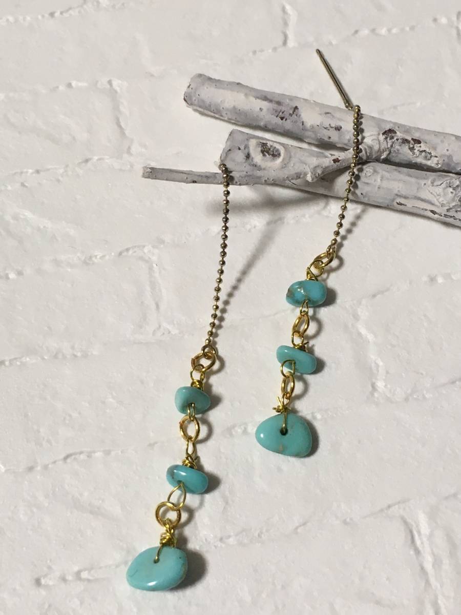- 新品 ハンドメイド ピアス アメリカンピアス チェーンピアス ターコイズ ターコイズピアス 手作り