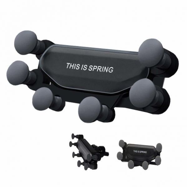 - 車載ホルダー 重力連動7点固定 エアコン吹き出し口用 取付け簡単 角度調整可能 衝撃緩和 多機種対応(4~6.5インチ対応)【'3色選択】