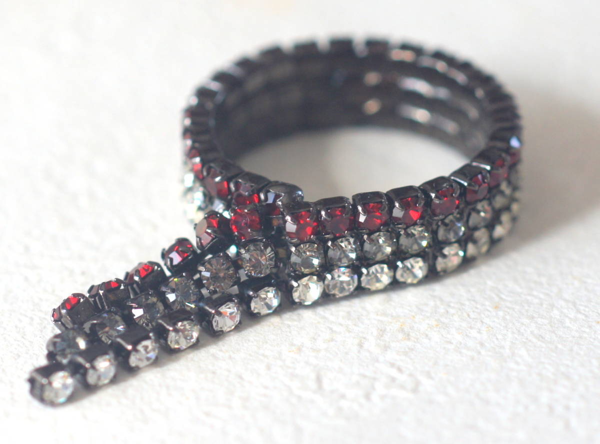 - 未使用 ダイヤレーンリング ブラックメタルに3色ストーン付き サイズ約13号