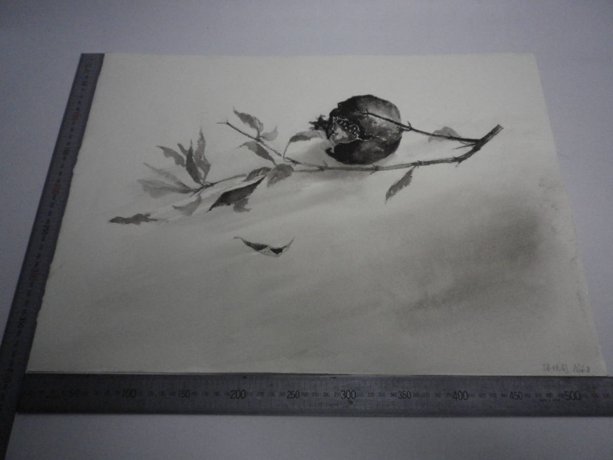 > 「ざくろ 2 ~ ざくろ 3(裏表描画)」水墨画【坂垣内 将泰】作者直筆原画「真作」P10号ハーネミューレ紙(経年保管品)【送料無料】00700241
