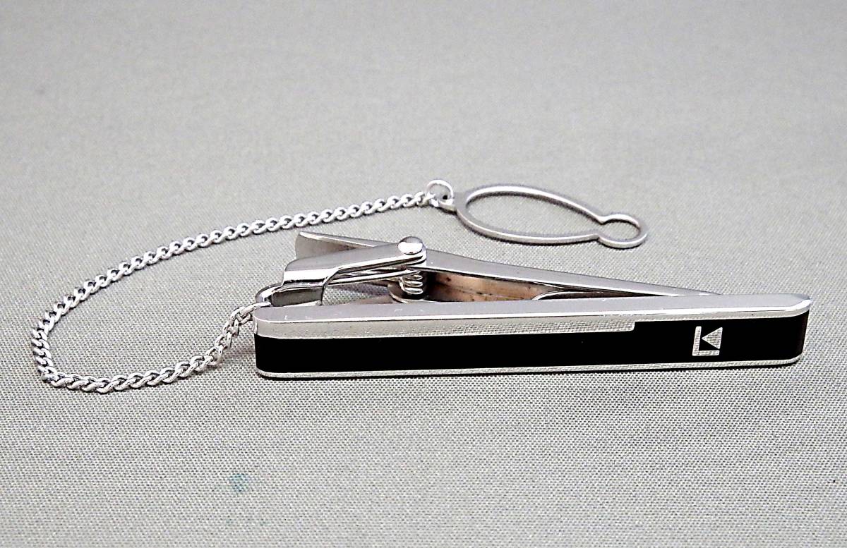 - EU-0055■ニッケルシルバー ライオンスター タイバー チェーン付き 黒×シルバーカラー 中古
