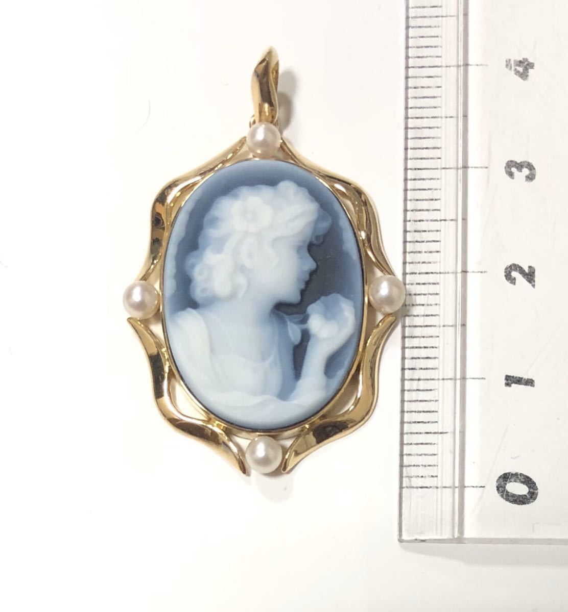 - 【質屋 尾張屋商店 東京】 750 18金イエローゴールド ペンダントトップ カメオ パール