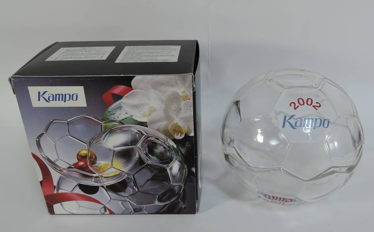 - ☆V09■KAMPO かんぽ生命 2002 ガラス製 サッカーボール 小物入れ■未使用