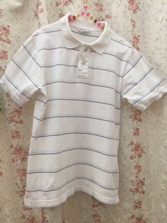 - 【夏物300円スタート実施中】 Men's メンズ ポロシャツ M 白 水色 ボーダー