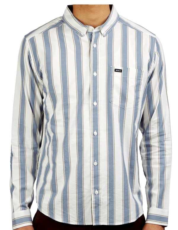 - RVCA ルーカ Caravan Striped 長袖シャツ 胸ポケット ボタンダウン