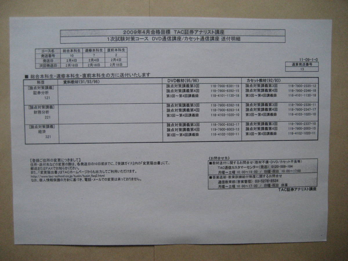 - 証券アナリスト 2009年4月合格目標 1次試験対策コース TAC証券アナリスト 未使用