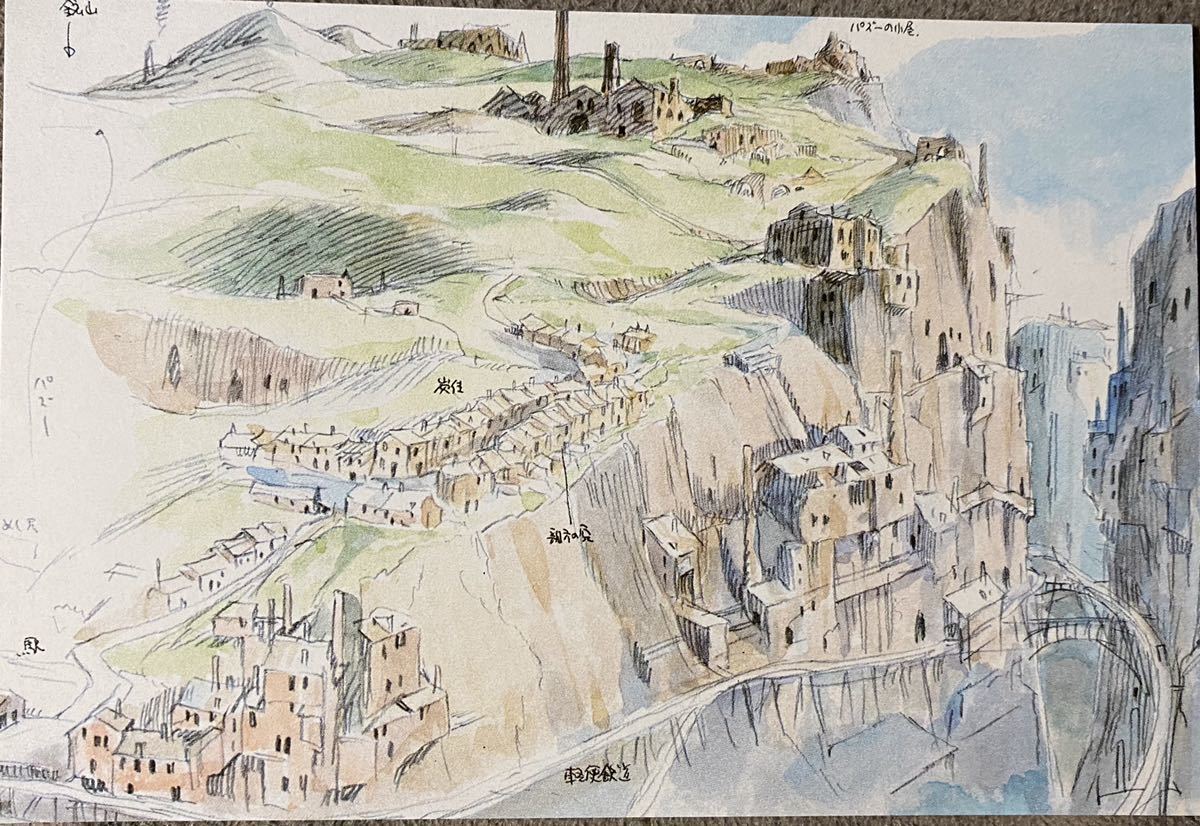 - 経年劣化あり 天空の城ラピュタ 宮崎駿 イメージボード ポストカード 単品 廃鉱寸前のスラッグ溪谷にパズーは住んでいた #宮崎駿 #ジブリ