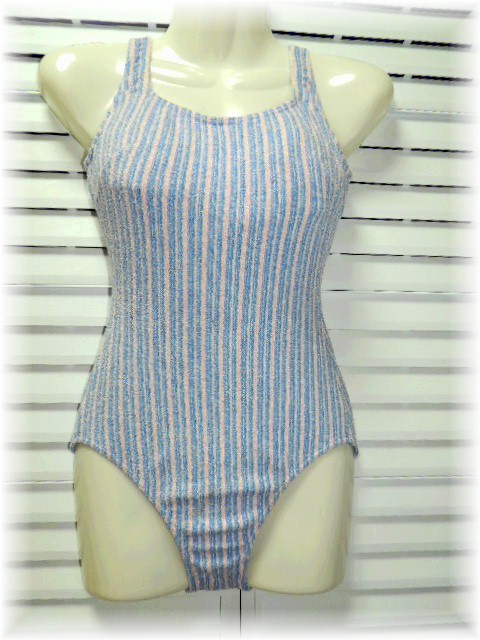 - RIOKA 日本製 ワンピース水着 9号/M ブルー・ピンク・ホワイトストライプ タオル地