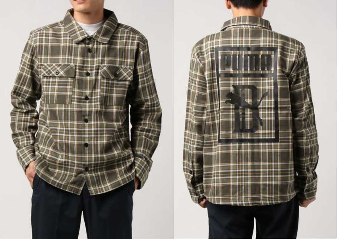 > 新品プーマ ビッグショーン コラボ チェックシャツ US/XSサイズ(S相当) 定価12960円 カーキ系 BIG SEAN CHECK SHIRT ネルシャツ