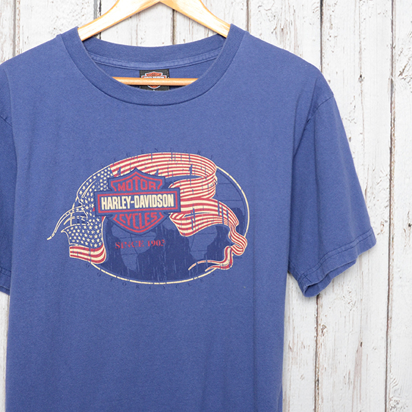 > BT2809 ハーレーダビッドソン Tシャツ L 肩51 星条旗 BARNET アーミー バイク メール便可 xq