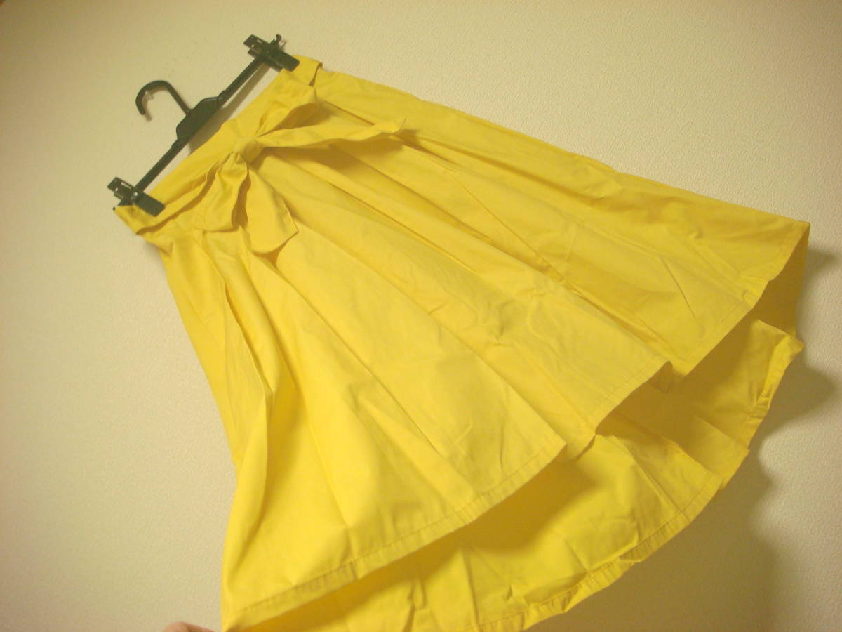 - アシンメトリーデザイン おリボン付き ミモレ丈 スカート イエロー 美品