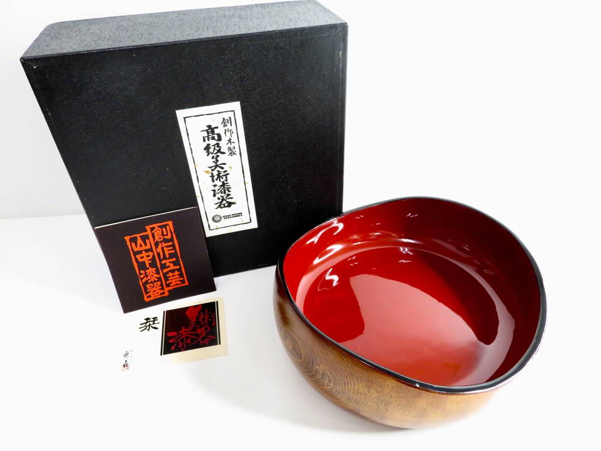 - ▲創作木製 高級美術漆器 山中漆器 新興漆器 菓子鉢 栞 菓子器 箱あり 未使用品 管理2007 T-8