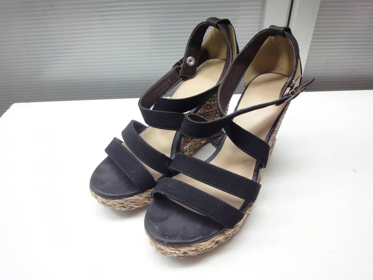 - 送料込◎RANDA/ランダ■23.0cm~23.5cm程度■クロスストラップ ウェッジヒール サンダル■BLACK/ブラック/黒■#20708MK599_31