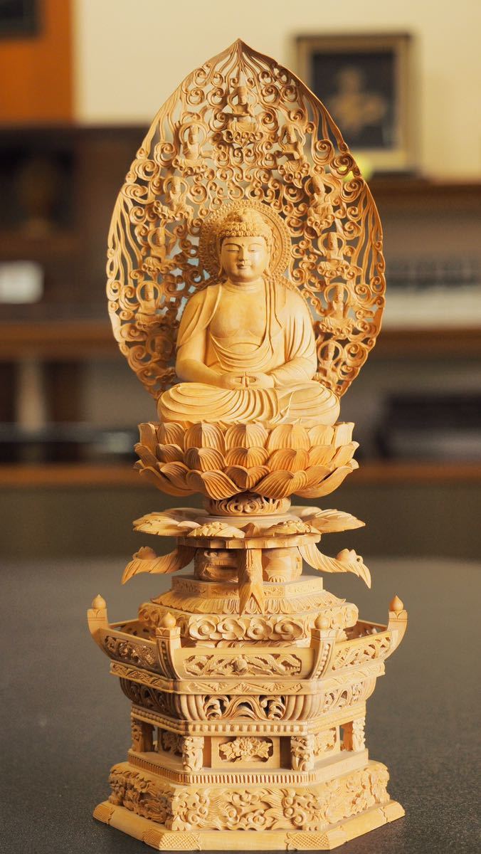 - 新品未使用 総拓殖 座弥陀 上級彫 六角ケマン座 飛天光背 仏教美術 仏像 阿弥陀